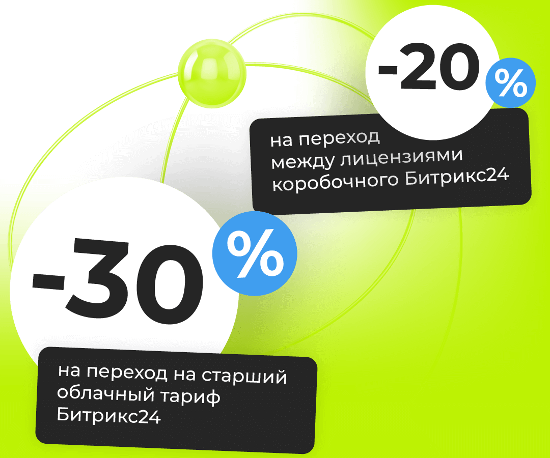 Акция действует для новых клиентов, покупающих Битрикс24 впервые, и для текущих клиентов, переходящих на более старший тариф, при покупке на 1 год