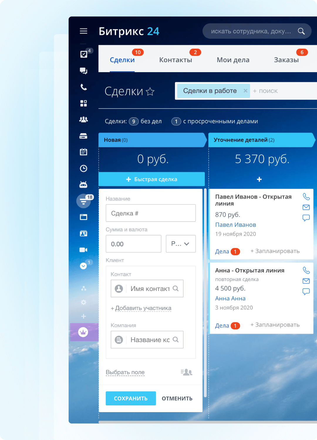 Только самые нужные инструменты для полноценной работы небольших отделов продаж и малого бизнеса.